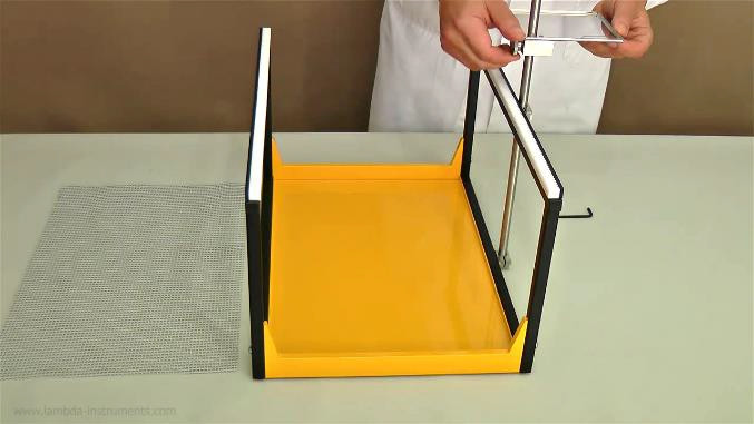 Push the metal rod through both fixation nuts on the right side of the frame and fasten them with screws. If needed fix the support plate on the metal.