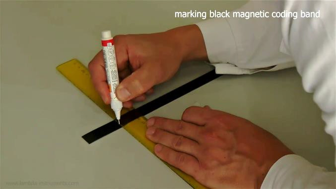 Draw the white lines correctly on the pre-marked places. Reserve approximately 2 cm of the coding band for the beginning and end-position signals.