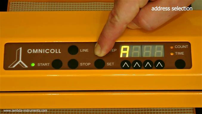 The message “A” and two numbers will appear on the display. This number from 00 to 99 is the current address of the fraction collector.